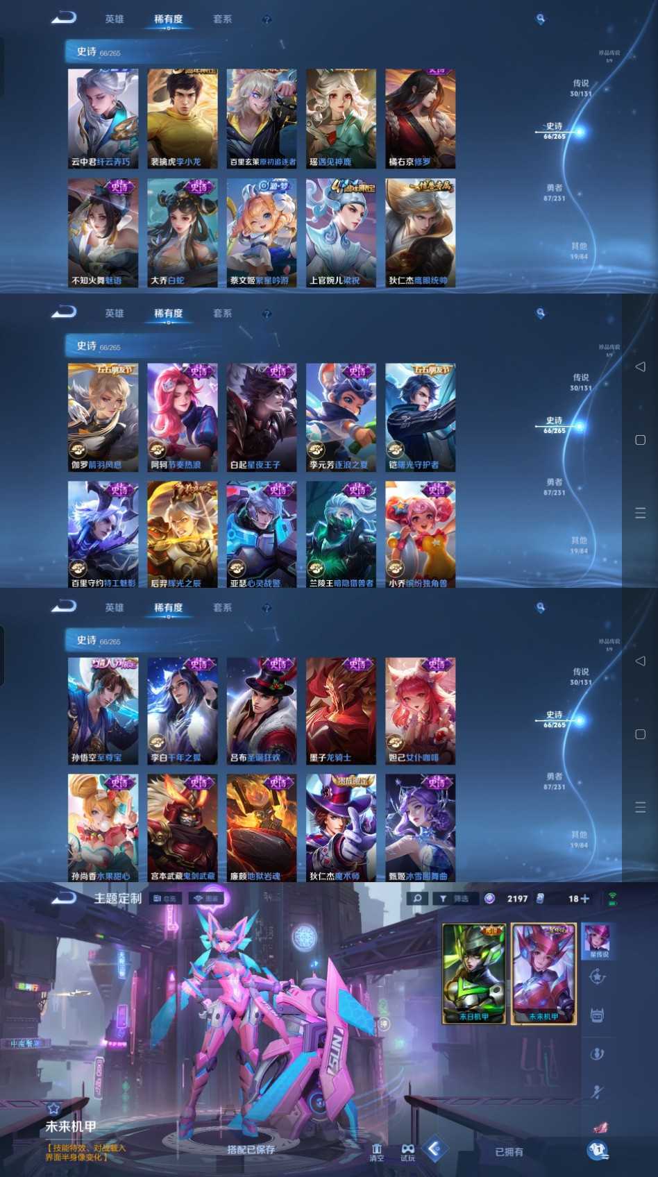 限制: 租号1次及以上 |装备描述:背包内道具禁止使用,请勿使用,用了会扣押金顶号,时间到了还登录白玩或者顶号全部改密拉黑处理永不解除,顶号机器会秒禁玩改密,顶号不仅拉黑还没得玩,赚三两块不容易,请理解谢谢。 ❤❤❤❤❤❤❤❤❤❤❤❤ 请勿开挂,挂机,送头,骂人,撤单后游戏等如有违规永久拉黑永不解除。 重置二级密码不要费劲了,号主每天都会上号查看,多行不义必自毙,人在做天在看,多做好事多自律,少做缺德事 该号英雄127个皮肤209个,典藏1个,无双4个,珍品传说3个,星传说1个,传说34个,史诗66个,祝你游戏愉快~