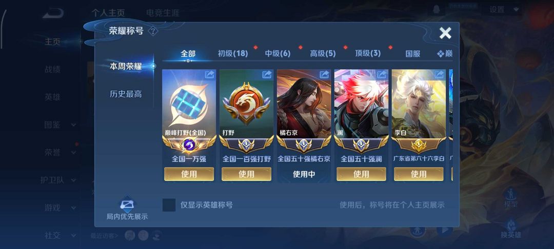 (抢先服)本周在榜国服50强橘右京澜⭐巅峰1800❤️84段打野⭐国服李白国服曹操国服赵云