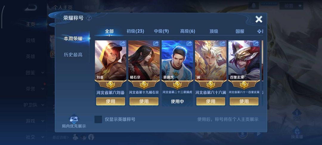 本周在榜省标刘备玄策澜裴擒虎橘右京⭐历史国服7大热门打野⭐80段国服打野