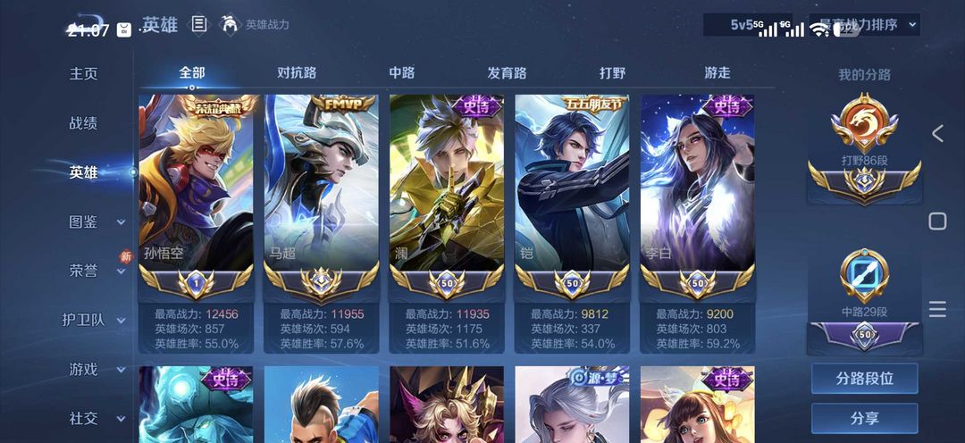 现巅峰1797六大国服韩信老虎马超斐最高近1.8w战力♥86段历史大国打野可排位
