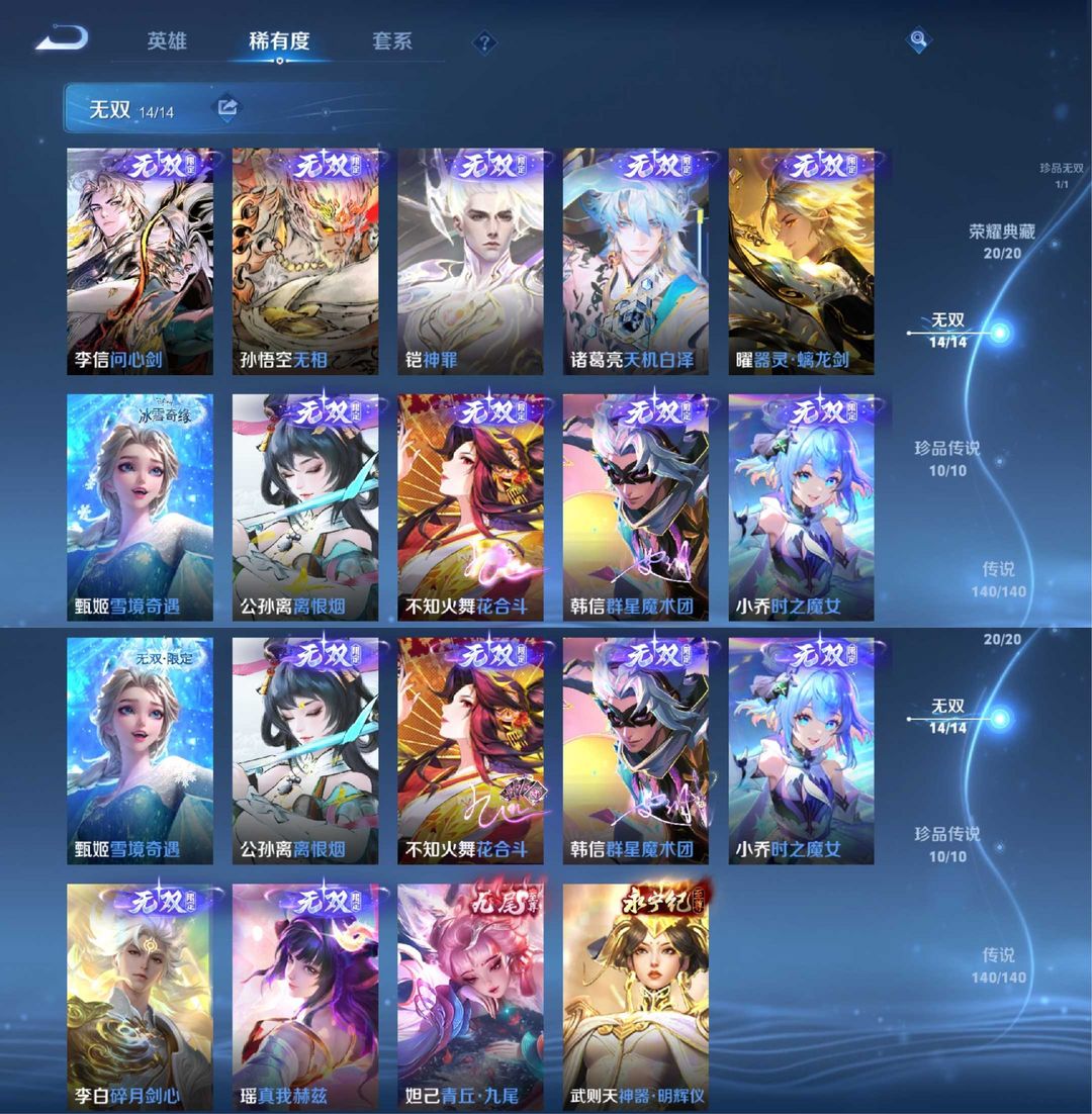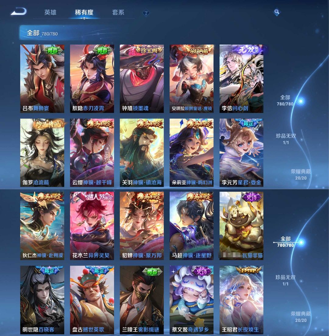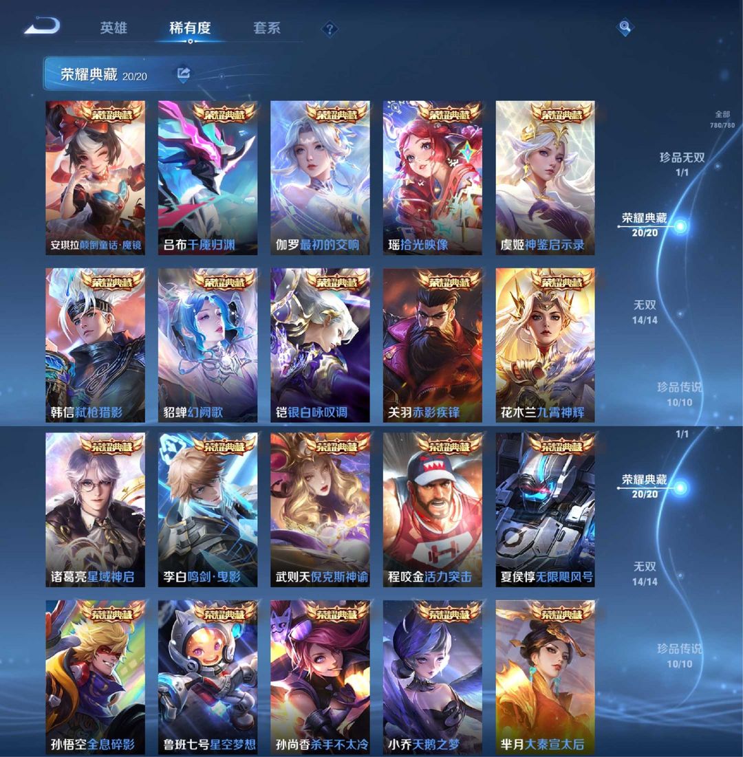 781皮⭕真满皮|全皮号⭕〖马年新皮肤已全部购买〗④国服·西施大国标✨满典藏✨满无双✨满珍品✨满传说