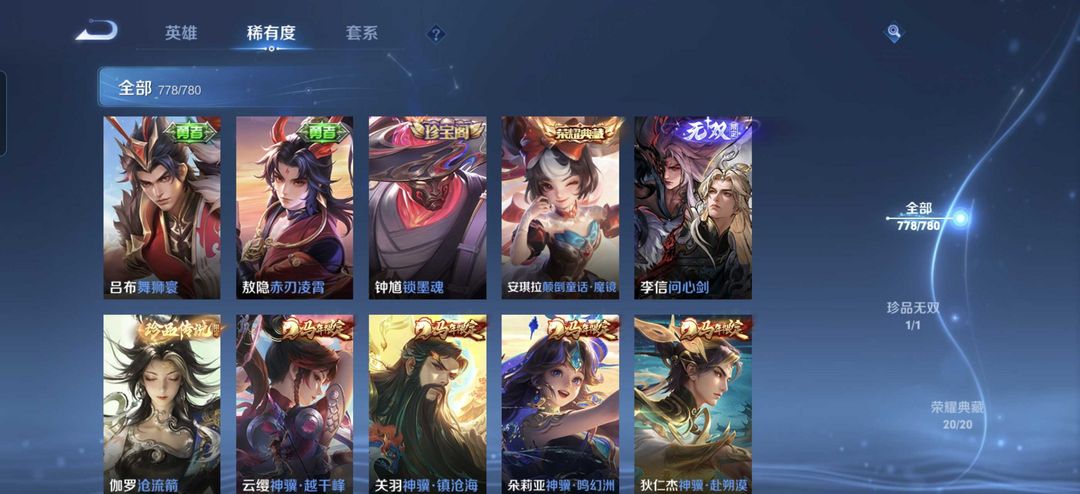 779满皮肤♥李信无双问心剑安琪拉荣耀典藏♥马年限定〖貂蝉慕夏♥馥梦繁华〗满典藏满无双
