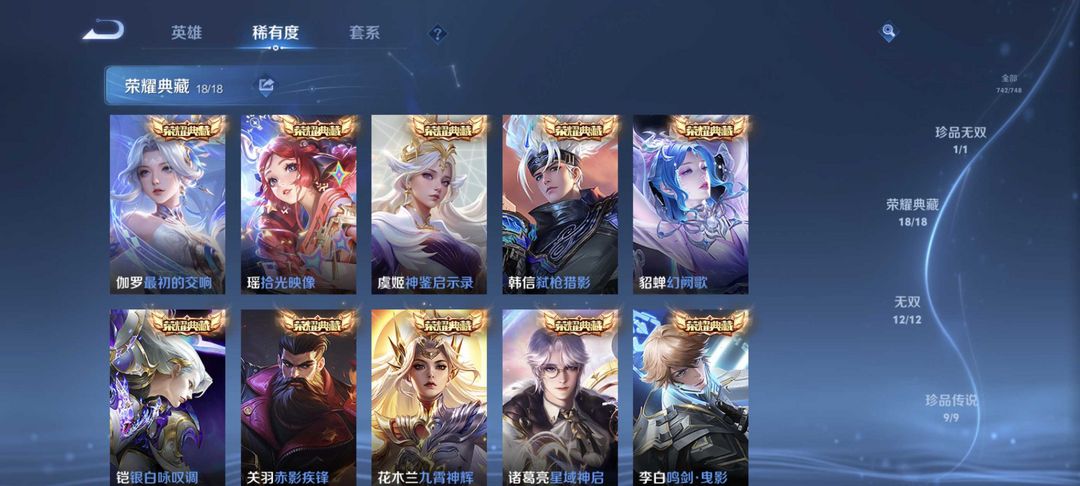 742皮肤✨满典藏✨满无双✨满珍品✨满传说✨多联动典藏小兵✨多天幕细节