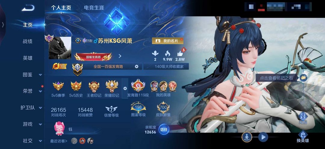 可以排位❤在榜百强发育路❤发育路119段❤历史10国服❤2万分公孙离马克❤国标发育路称号