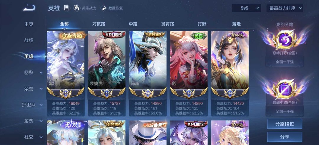 在榜金标镜老虎嫦娥❤巅峰2317巅峰万强闪电框3458名❤历史5国服百强巅峰对抗❤️可排位禁巅峰