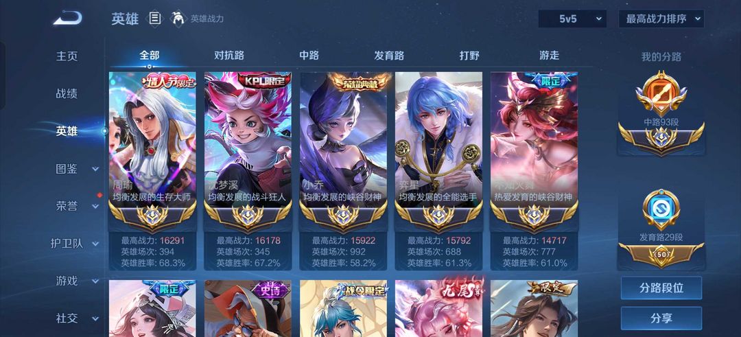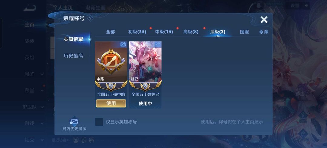 2月在榜小国服妲己❤️93段国服中路❤️v10历史8国服西施小乔火舞弈星周瑜❤️