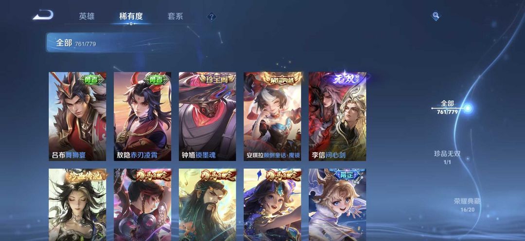 〖V11 761〗⭕马年新皮全有⭕〖安琪拉典藏❤李信无双❤伽罗珍品〗①⑥典藏✨满无双✨满珍品✨满传说