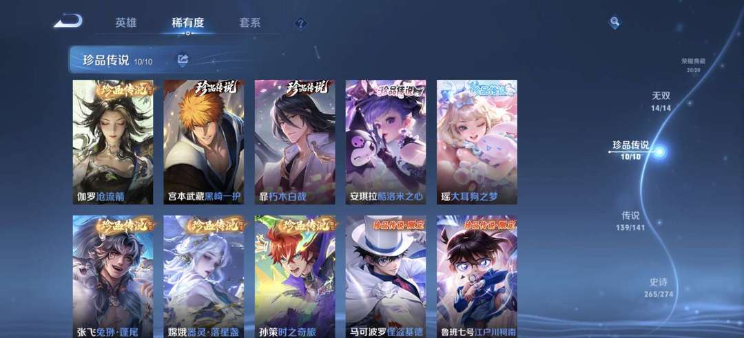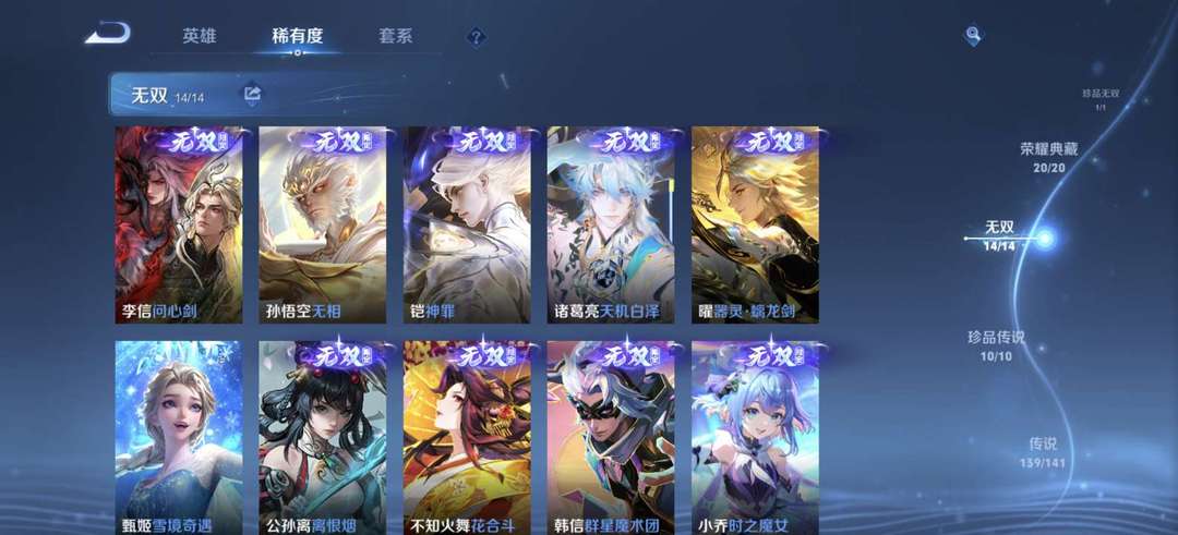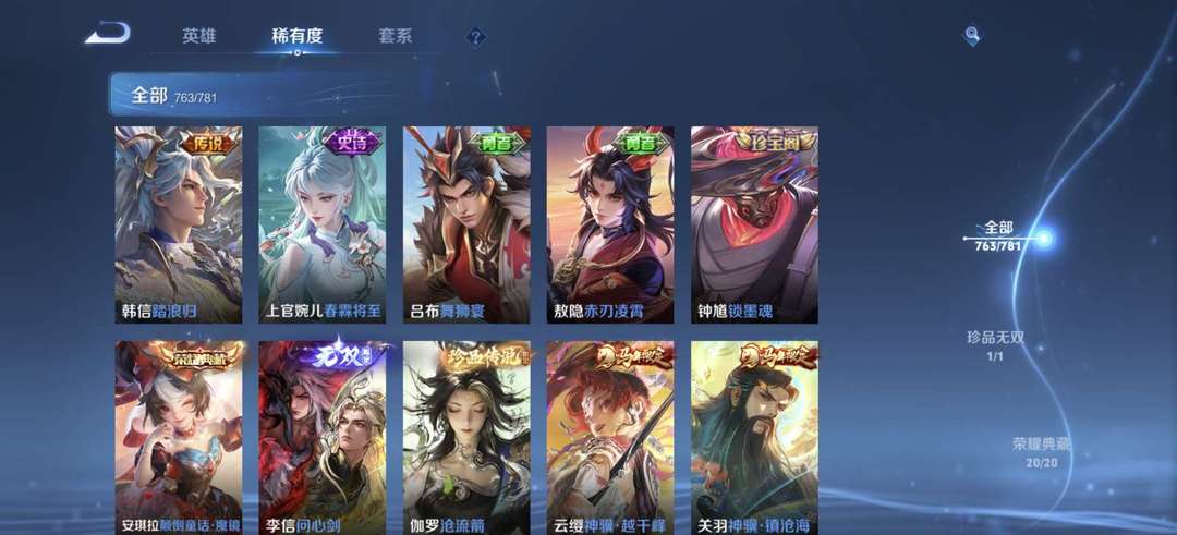 ♥全套年限♥李信无双♥俩典藏小兵皮♥安琪拉典藏♥吕布典藏♥全典藏♥满珍品传说♥全无双