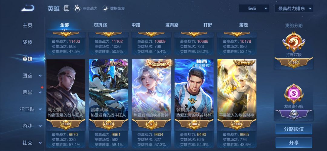 77段打野在榜省标多市标三国服打野⭐️梅西离恨烟花合斗至尊宝白虎志多热门限定⭐️15彩标⭐️可排位