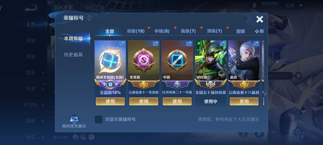 本周在榜国服50强孙尚香⭐巅峰1800⭐59段发育路⭐历史国服马可波罗狄仁杰
