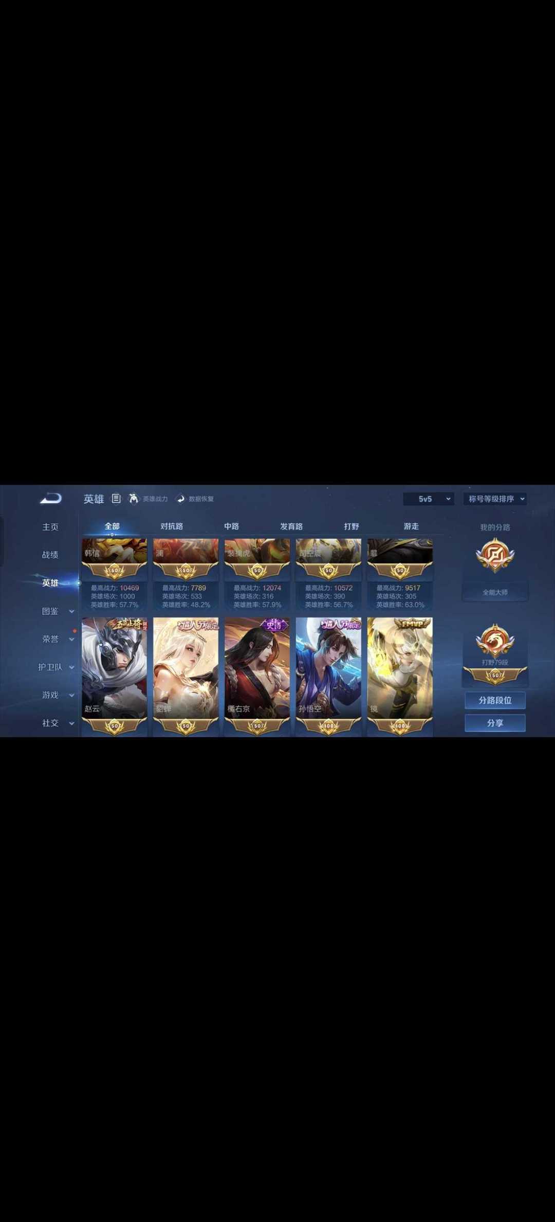 79段打野三国服打野★56传说★离恨烟花合斗★线条小兵★鸣剑曳影韩信无双星域神启基德多热门限定