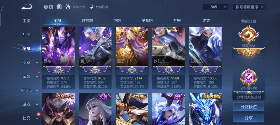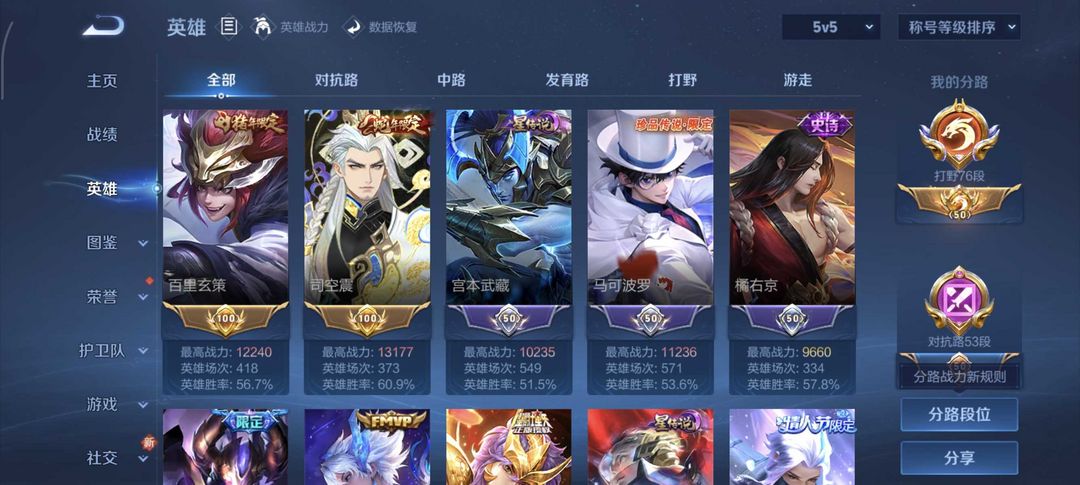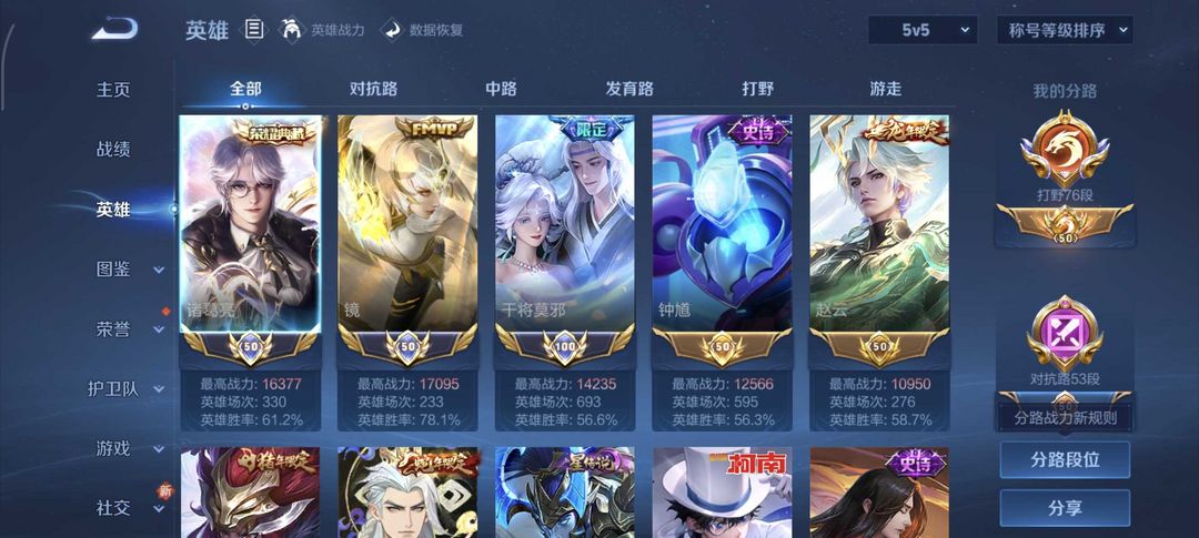 无禁言 1.7w小国镜1.63w小国诸葛亮多热门省标76段打野无双贵族可排位