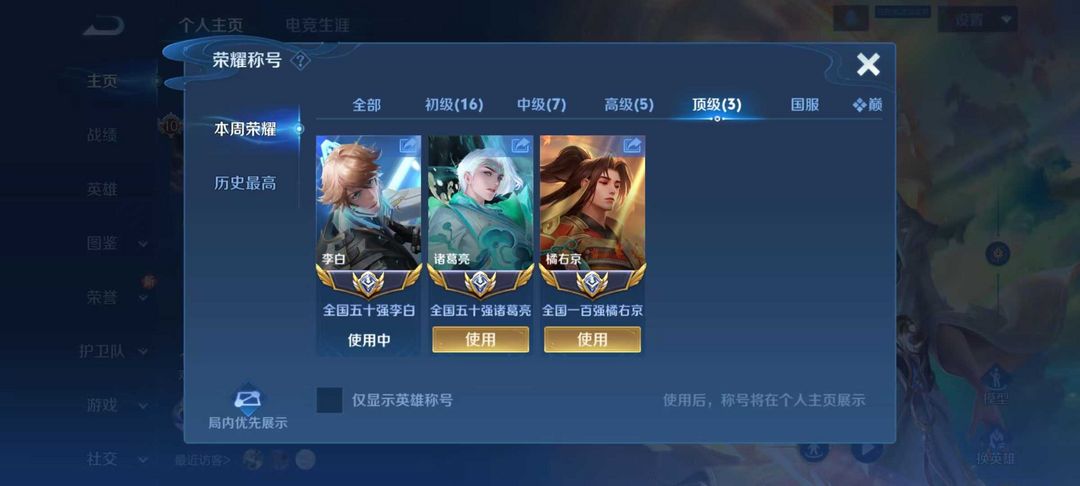 ⛔抢先服〖本周在榜三国服〗巅峰万强⛔禁巅峰✨本周在榜国服〔诸葛亮&李白&橘右京〕✨⑥国服|打野⑥①段