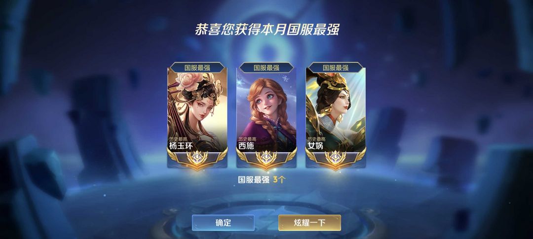 二月在榜国服杨玉环女娲西施⭐巅峰2100⭐v10⭐历史大国服瑶瑶安琪拉小乔火舞