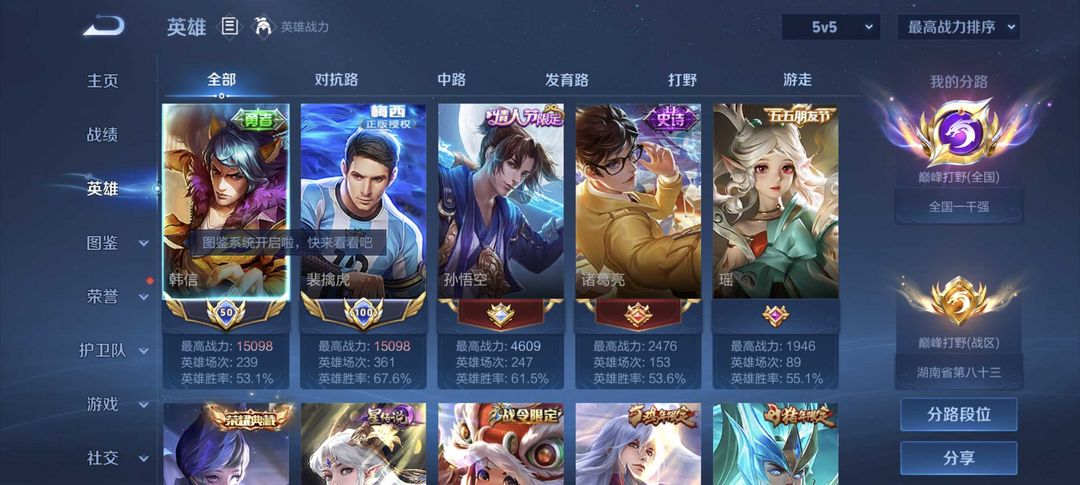 正式服本周在榜市标标悲擒虎韩信⭐巅峰全国百分之前十打野⭐巅峰1800⭐梅西限定