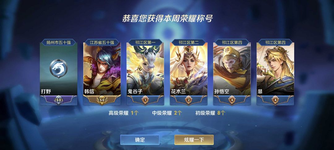 本周在榜省标韩信⭐双荣耀典藏⭐历史大国服韩信