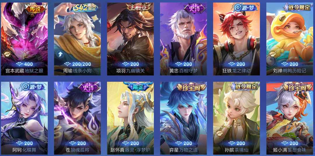 超值套餐☆推荐包天★1典藏12传说★澜全皮★星域神启★战鼓燎原★鹤羽星尊★零号赤焰★淬星耀世★一念神