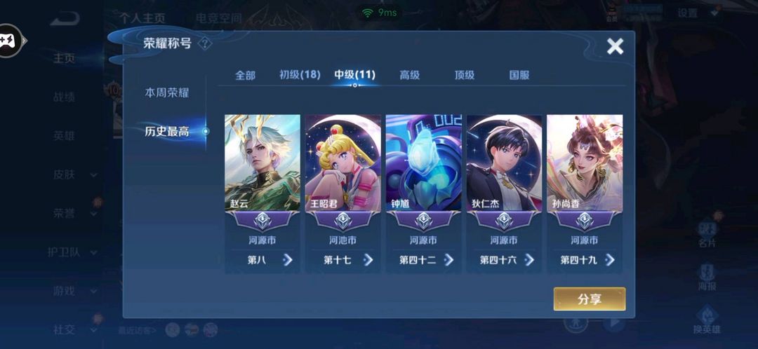 游戏区服:王者荣耀-QQ安卓-QQ账号 -手Q191区-荣耀王者