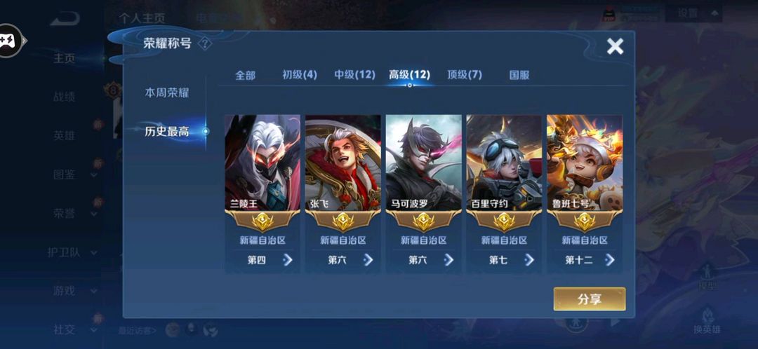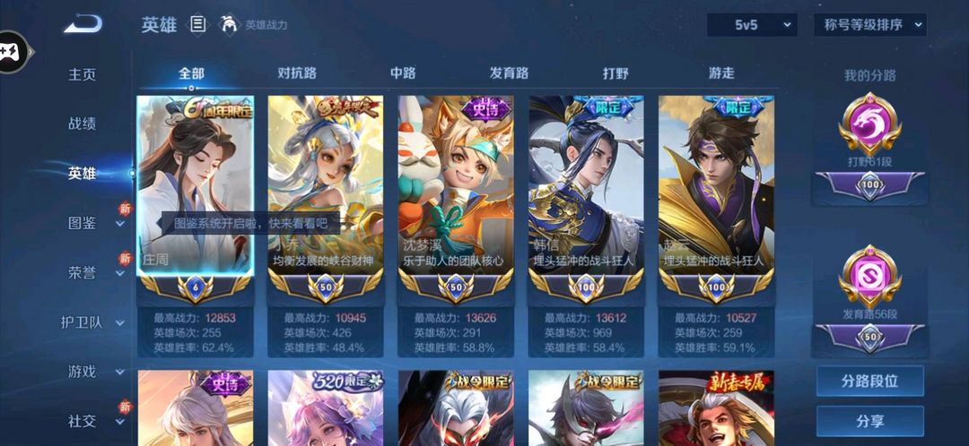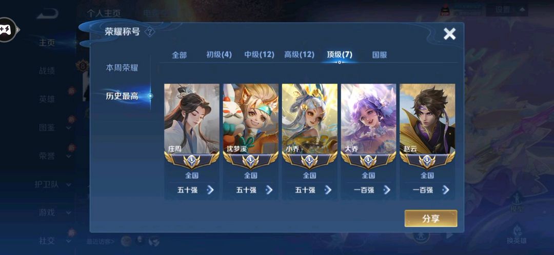 历史7小国小乔国服沈梦溪小国奕星国标韩信国服赵云数字标庄周小国标大乔/61段打野