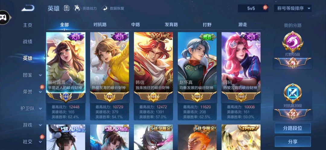 历史小国标娜可露露国服/4金标万战韩信阿轲阿古朵赵怀真/65段打野/弑枪猎影/炽阳神光