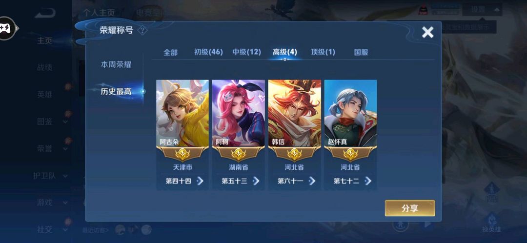 游戏区服:王者荣耀-QQ安卓-QQ账号 -手Q42区-圣剑裁决
