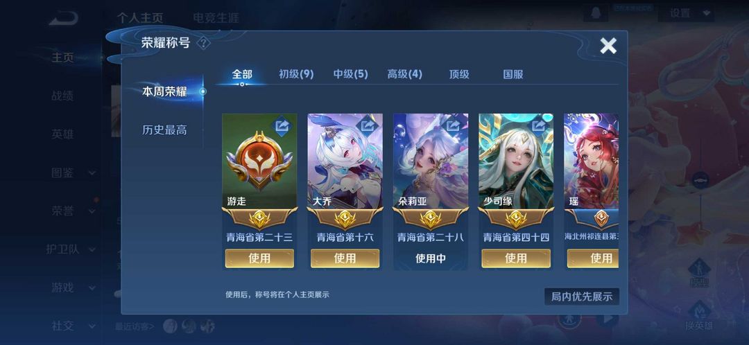 禁排位极品富婆女号15国服5大国服瑶大乔少司缘朵莉亚在榜7金牌87段游走路可排位/巅峰百强游走满天幕