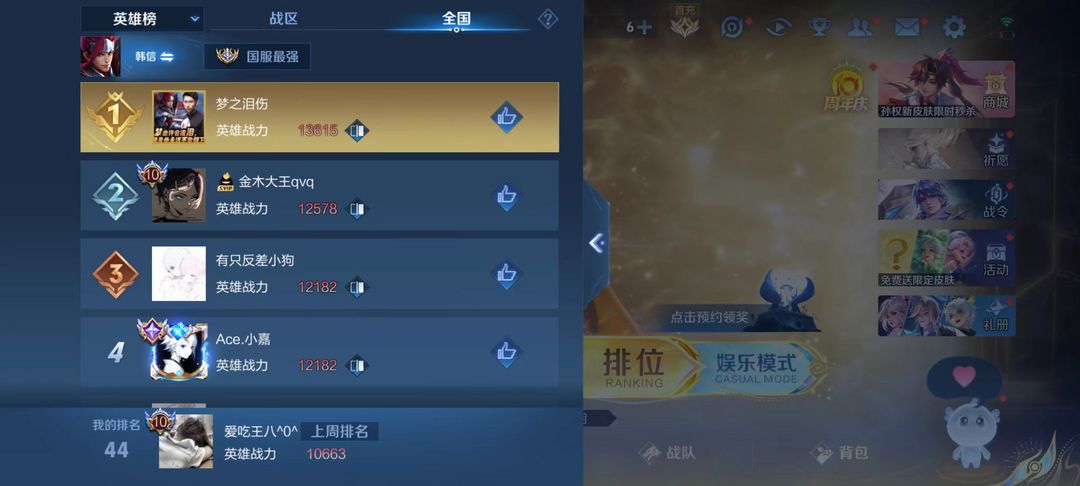 游戏区服:王者荣耀-QQ安卓-QQ账号 -手Q125区-游击弯刀