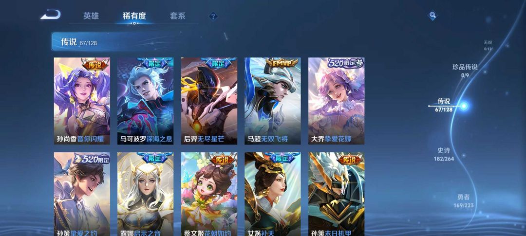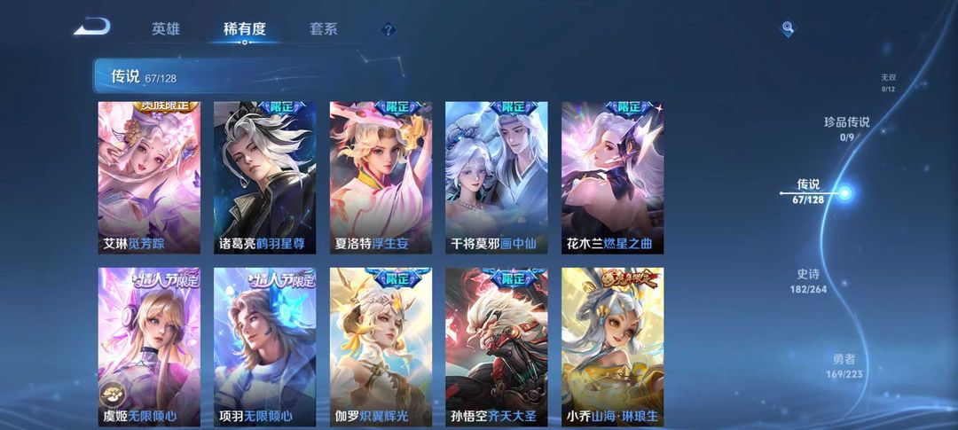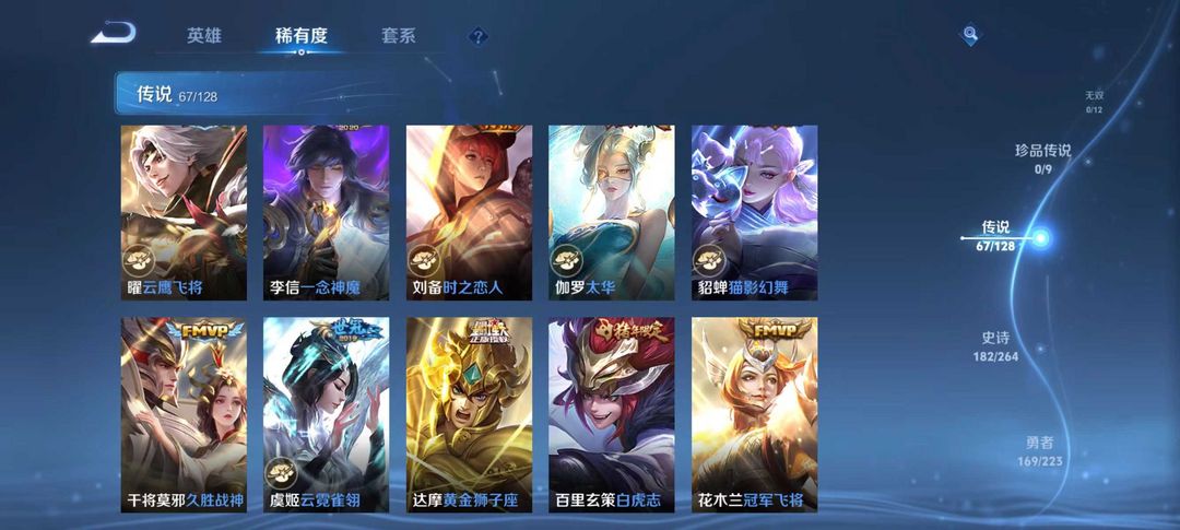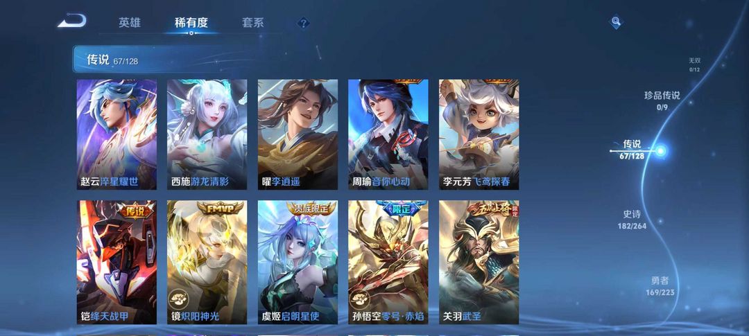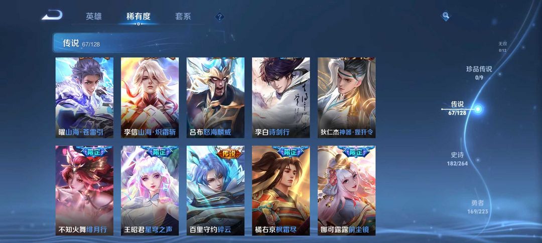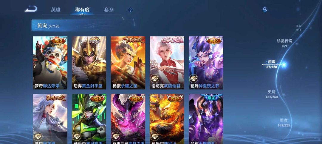 贵族v10⚡3省标⚡荣耀典藏6⚡传说皮肤67⚡史诗皮肤182⚡包天便宜⚡优质皮肤
