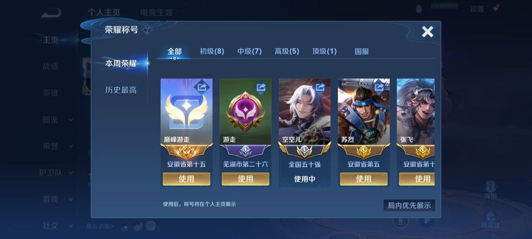 游戏区服:王者荣耀-QQ安卓-QQ账号 -手Q13区-和平守望