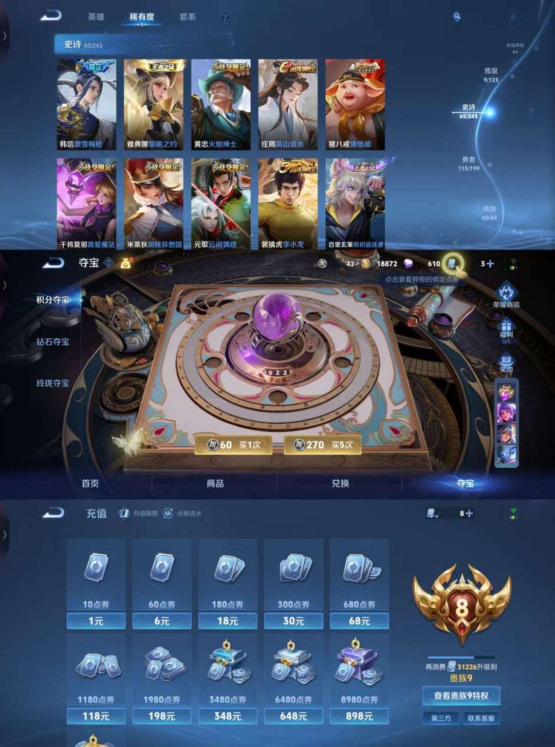 限制: 撤单率<40%才可租用此帐号装备描述:此号安卓系统!可加好友可发言!朋友开黑最佳选择!进错区请选择266区!请将游戏更新好以后把自己的游戏账号退出再下单! 号主协助成功上不去游戏可以尝试以下方式(游戏期间千万别切屏,会掉线) 1:启动游戏到游戏登录界面无反应(可以尝试点击V图标) 2:重启手机 重新进app启动游戏 特别声明! 【乱投诉拉黑】 切勿开挂/分解装备/恶意骂人/等等违规行为,发现违规必追查到底 (平台登录记录,游戏登录ip 手机号 设备串号 充值付款记录 不要侥幸现在网警都能调到你的所有行为记录 就算盗用他人信息也一样能查到你头上) 按账号充值金额=起诉/刑事立案/追责赔偿!!!!!!!!!!!!!!!!!!!!!! V8!266皮肤4典藏9传说65史诗!鸣剑曳影-无限飓风号-天魔缭乱-凤求凰-禁言