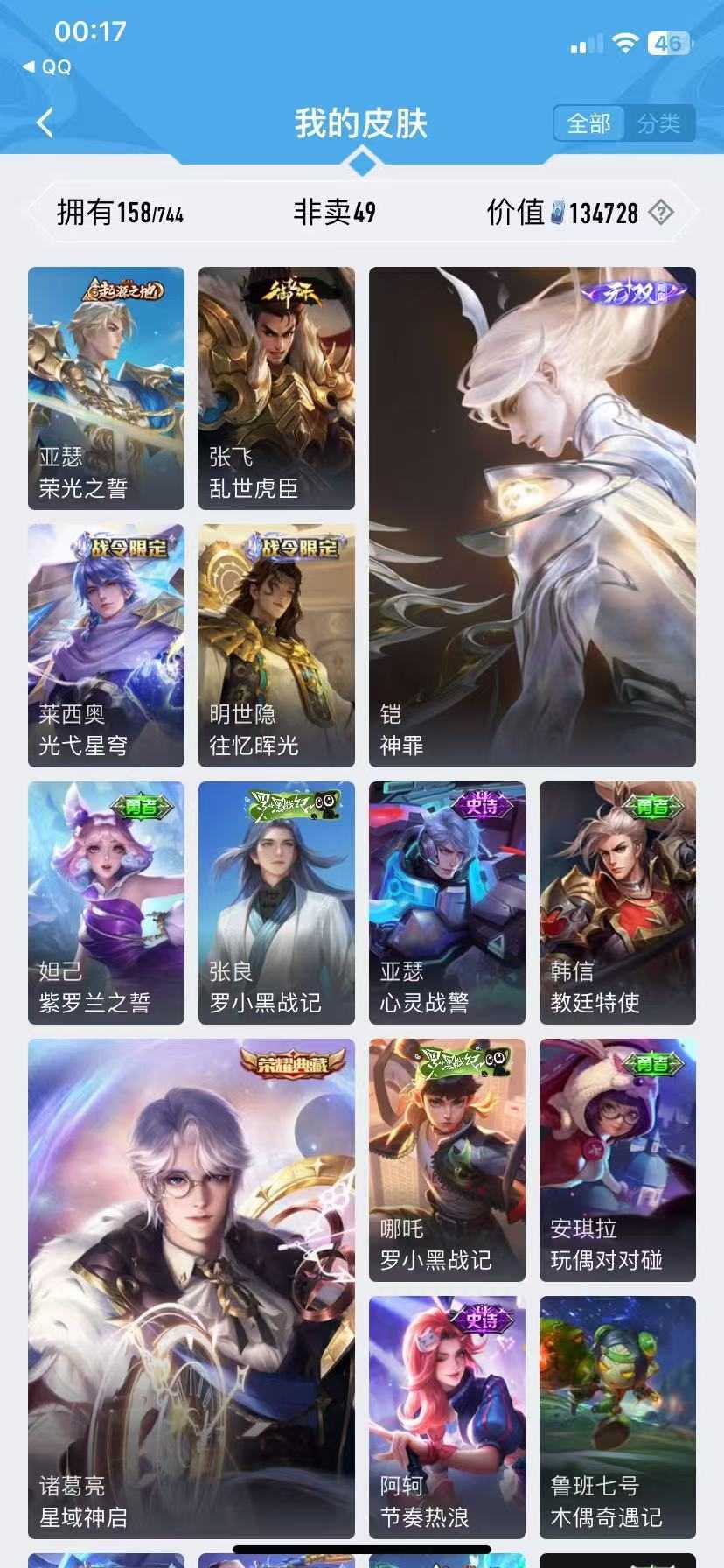 游戏区服:王者荣耀-QQ安卓-QQ账号 -手Q481区-陨星永夜