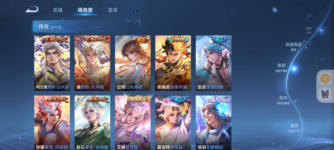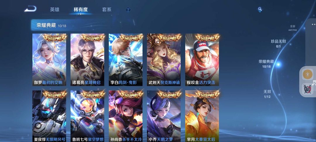 装备描述:446皮肤国服1.3万战力镜❤国服孙膑❤打野45段❤11典藏63传说皮肤❤蛇年限定