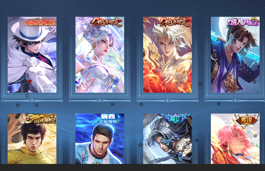 小兵皮肤❤最初的交响全息碎影❤雪境奇遇花合斗❤怪盗基德时之奇旅❤至尊宝李小龙梅西❤酷洛米之心无限飓风