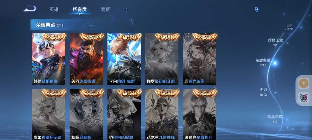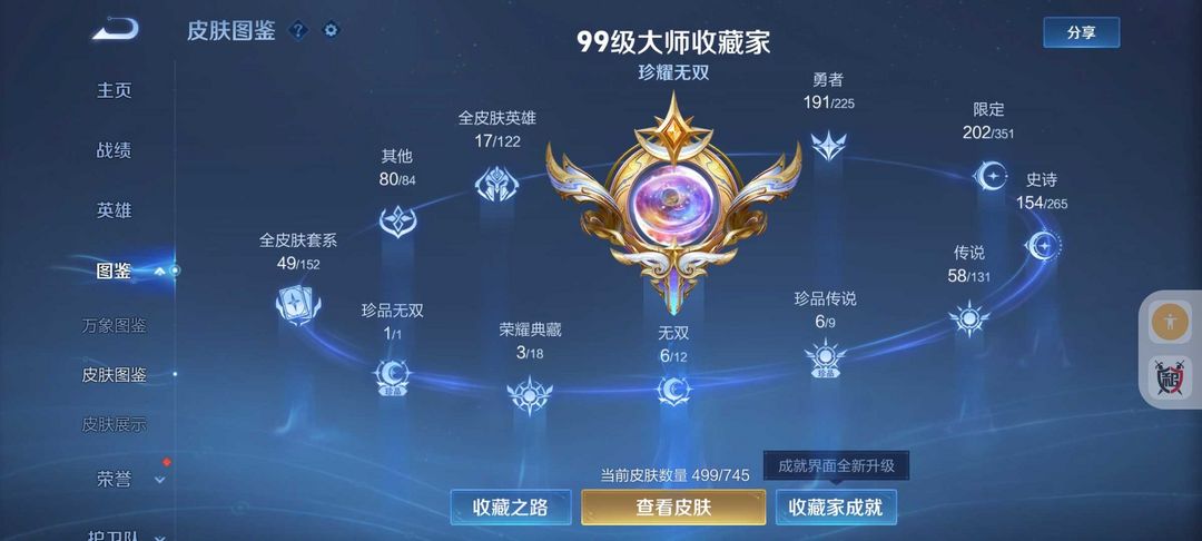 装备描述:499皮肤❤️貂蝉慕夏❤️6珍品❤️花合斗❤️3典藏6无双❤️诡秘之主❤️满蛇年❤️