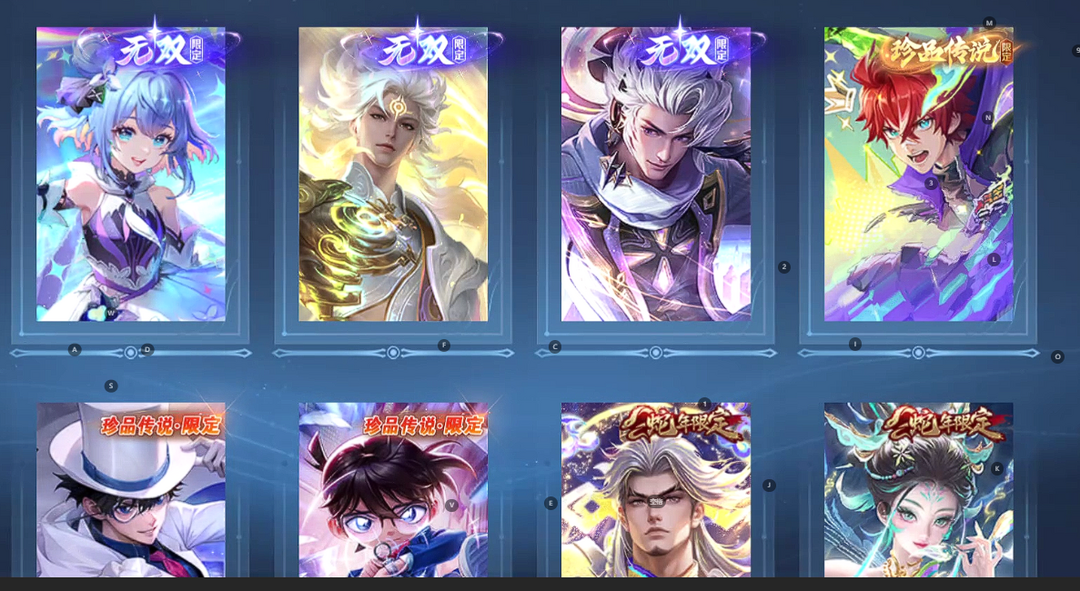 小兵皮肤龙蛇限全❤拾光映像九霄神辉❤赤影疾锋全息碎影❤花合斗时之魔女❤群星魔术团碎月剑心❤柯南基德