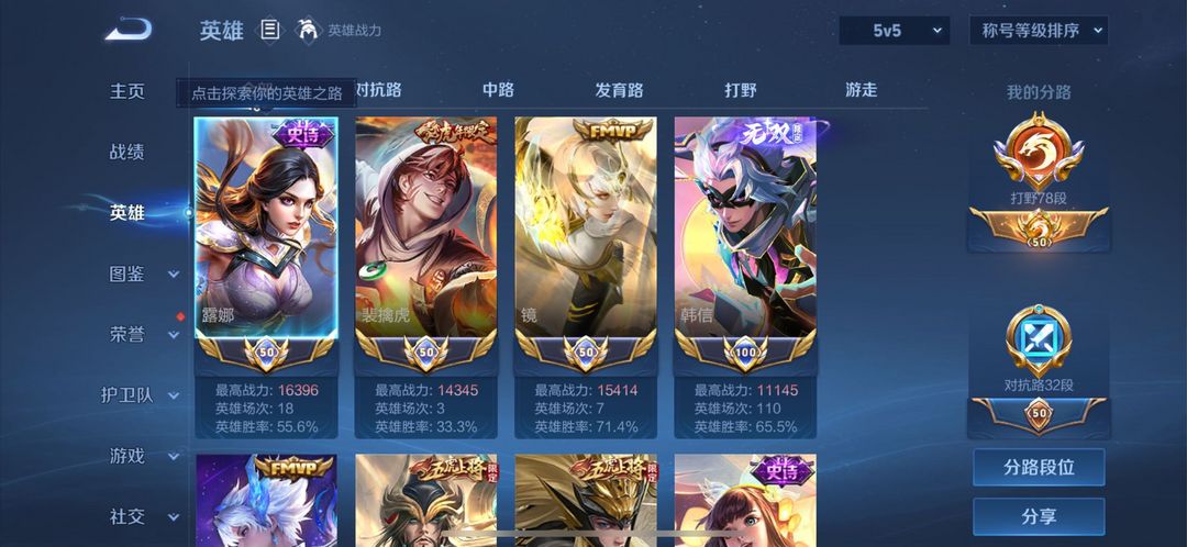 巅峰万强闪电框⚡️✨在榜省标韩信✨顶尖78段打野✨1.6小国露娜裴擒虎镜韩信✨禁巅峰赛