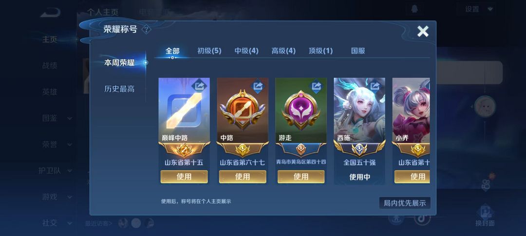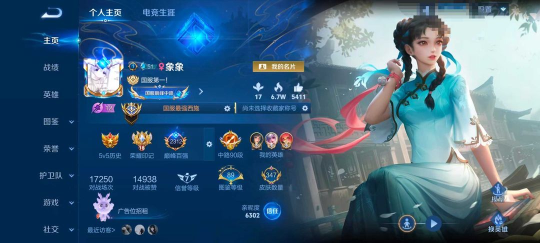正式服小国标西施/省标小乔在榜⭐️巅峰千强361名⭐️90段极品中路⭐️多皮肤漂亮号⭐️可排位禁巅峰