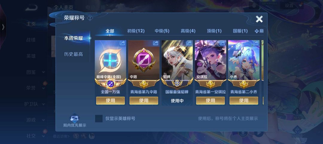 二月在榜国服貂蝉+禁止巅峰万强闪电框+省级小乔安琪拉❤️历史四大国服瑶甄姬小乔小国标大乔马年限定女号