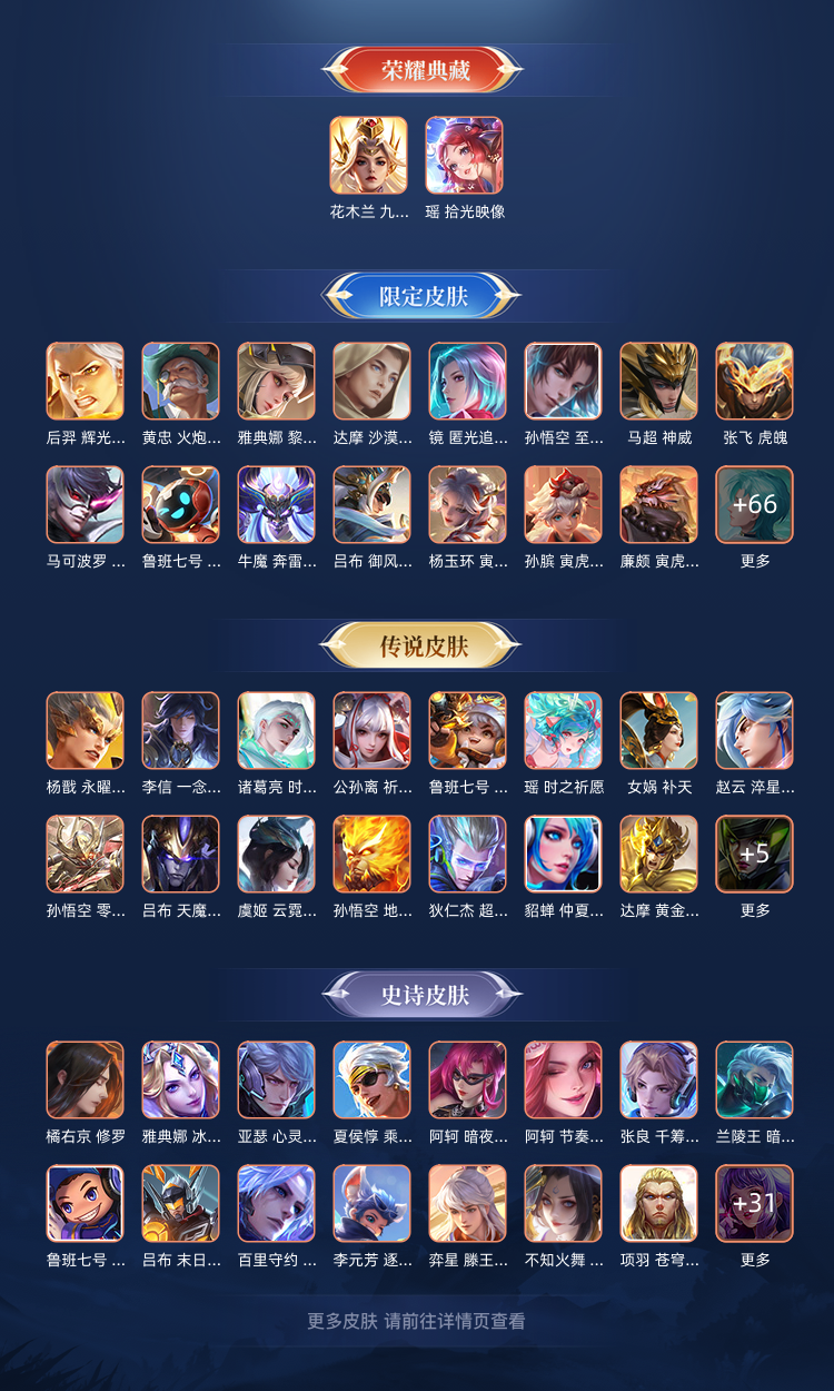 装备描述:201区 荣耀水晶: 九霄神辉 传说皮: 黄金狮子座,云鹰飞将,久胜战神,炽阳神光,一念神魔,云霓雀翎,末日机甲-孙尚香,地狱火,仲夏夜之梦,零号·赤焰,地狱之眼,时之恋人-刘备,淬星耀世,超时空战士-狄仁杰,妄想实况,艾琳觅芳踪,琥珀纪元马超,乘龙·问璇玑,吕布曦玄引 限定皮: 冰锋战神,遇见飞天,李小龙,奔雷神使,祈雪灵祝,游园惊梦,梁祝,御风骁将,云端筑梦师,时雨天司,白鹤梁神女,烈魂,魔法小厨娘,辉光之辰,异界灵契,白晶晶,天狼溯光者,虎魄,天魔缭乱,神威,永曜之星,奇迹圣诞,乒乒小将,天狼征服者,青春决赛季,冰霜恋舞曲,天狼运算者,逐梦之星,神奇女侠,天狼绘梦者,寅虎·御盾,美猴王,白虎志,朱雀志,至尊宝,一生所爱,武陵仙君,如梦令-后羿,大圣娶亲,寅虎·瑞焰,霸王别姬-项羽,高山流水,孙行者,猪悟能,匿光追影者,女儿国国王,傲雪梅枪,寅虎·赤拳,寅虎·心曲,寅虎·展翼,时之祈愿-云中君,时之祈愿-瑶,补天,五谷丰年,诗剑行