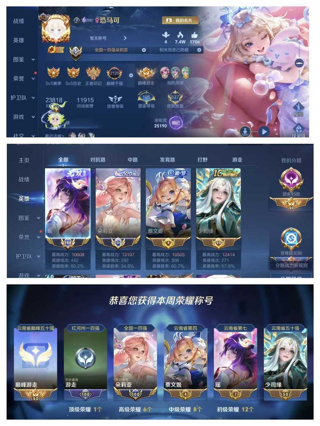 在榜巅峰万强1800名框2125⭐在榜省级万战朵莉亚少司缘瑶妹⭐历史国服瑶妹禁巅峰可排位