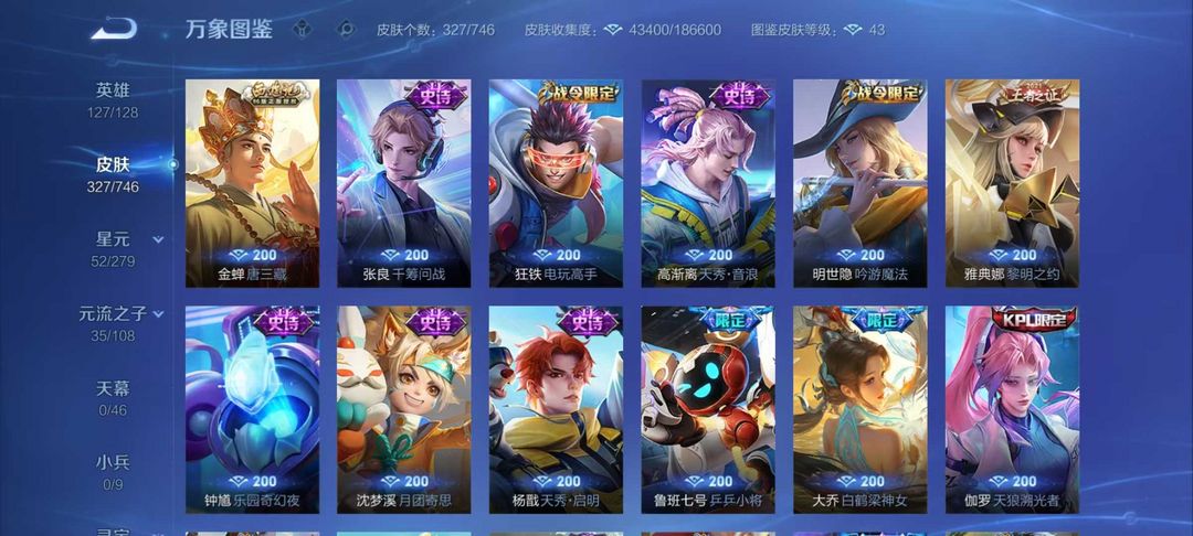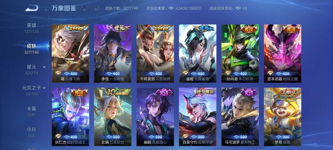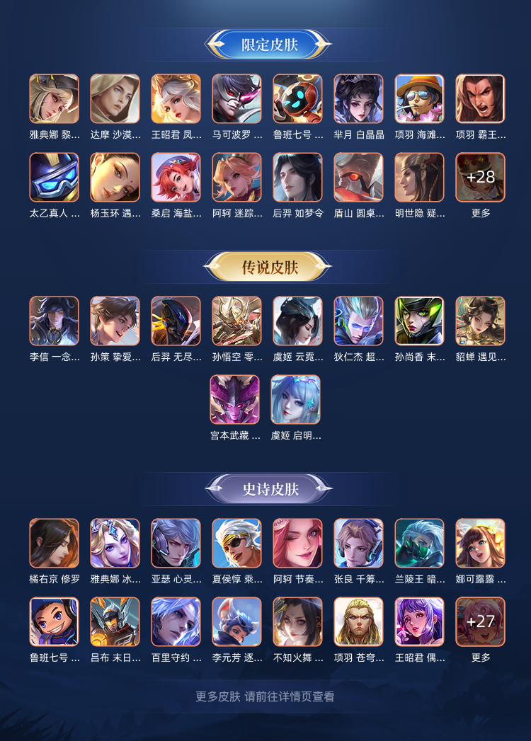 327p极品多皮肤多限定多装扮号 瑶 小乔 妲己