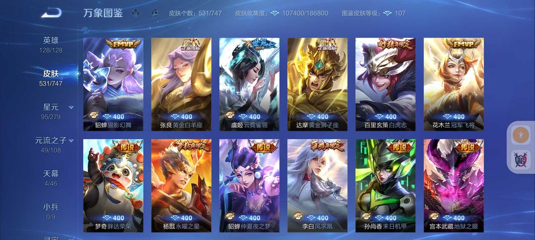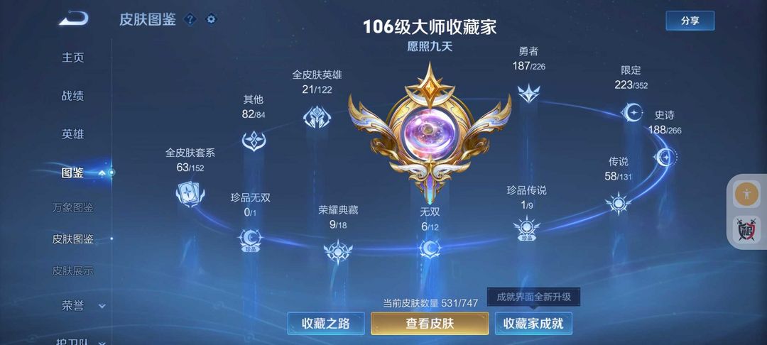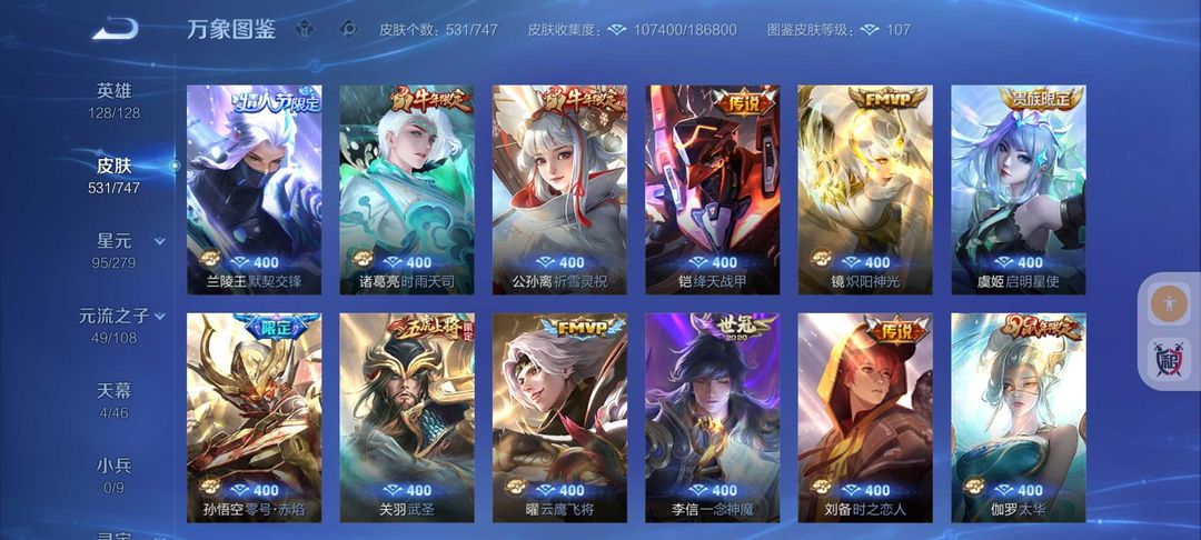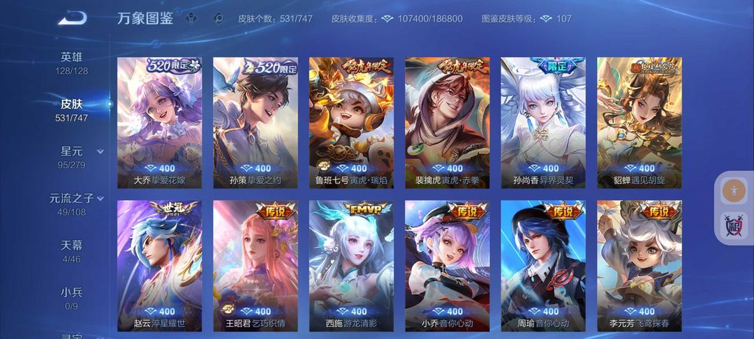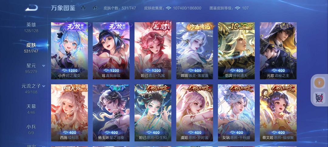 装备描述:无双V10❤️531皮肤10典藏6无双皮肤❤️诡秘之主❤️满蛇年❤️4天幕❤️离烟恨❤️