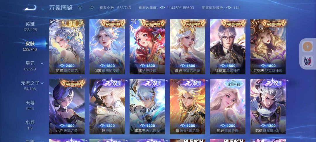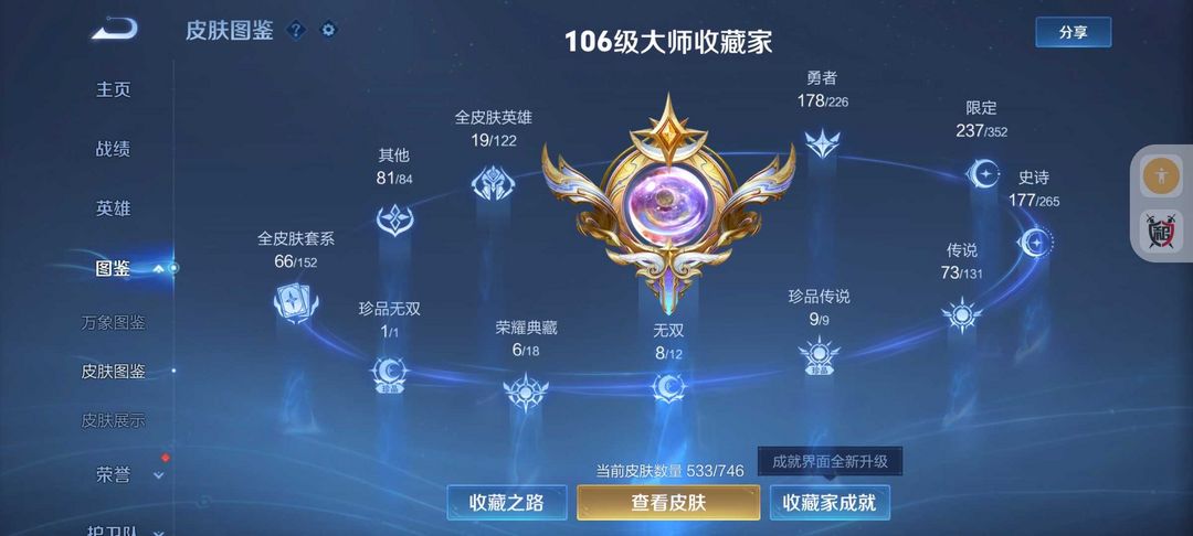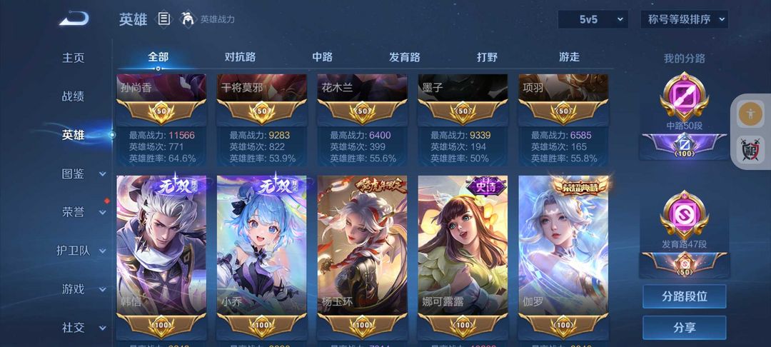 荣耀V10女号❤️全女皮中路50段10金标❤️533皮肤8水晶❤️貂蝉慕夏珍品❤️满珍品❤️凯神罪❤