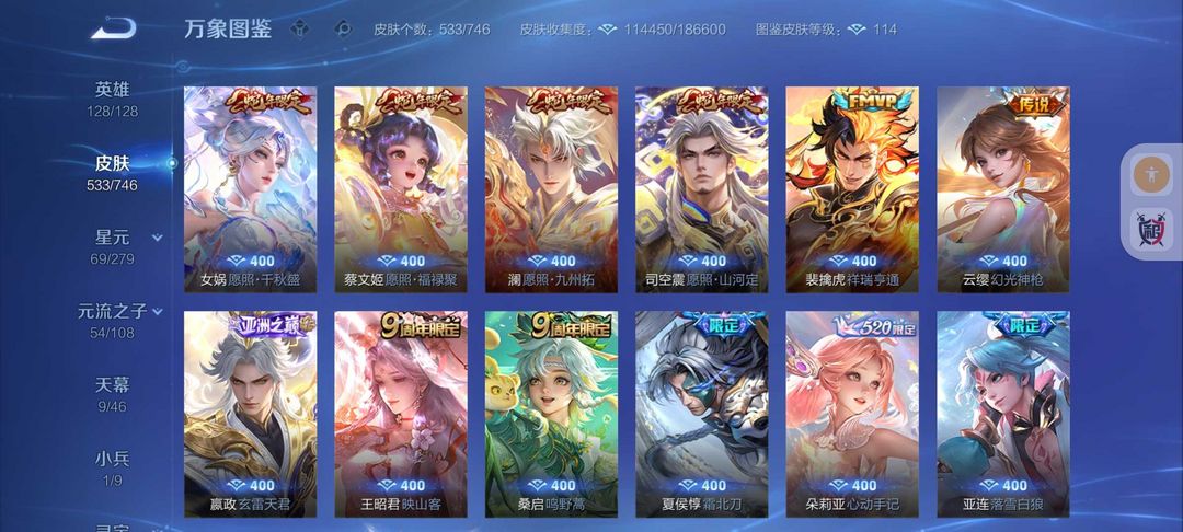 装备描述:荣耀V10女号❤️全女皮中路50段10金标❤️533皮肤8水晶❤️貂蝉慕夏珍品❤️满珍品❤️凯神罪❤️天机白泽❤️露比小兵❤️8无双❤️诡秘之主