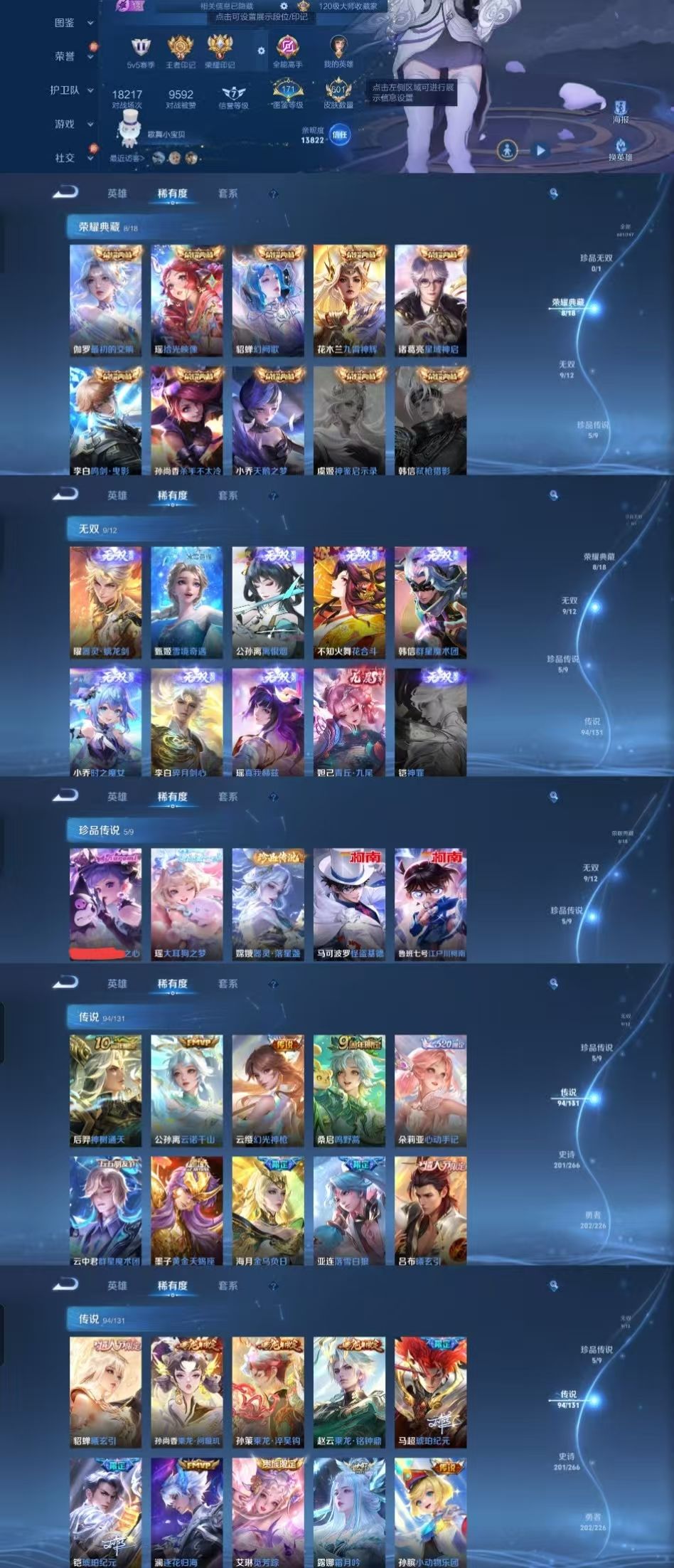 限制: 租号2次及以上 |装备描述:时间到了还登录白玩或者顶号全部改密拉黑处理永不解除,顶号机器会秒禁玩改密,顶号不仅拉黑还没得玩,赚三两块不容易,请理解谢谢。 ❤❤❤❤❤❤❤❤❤❤❤❤❤❤❤❤❤❤❤ 请勿开挂,挂机,送头,骂人,撤单后游戏等如有违规永久拉黑永不解除。 重置二级密码不要费劲了,号主每天都会上号查看,多行不义必自毙,人在做天在看,多做好事多自律,少做缺德事。 该号英雄127个皮肤601个,典藏8个,无双9个,珍品传说5个,星传说7个,传说94个,史诗201个,祝您游戏愉快~