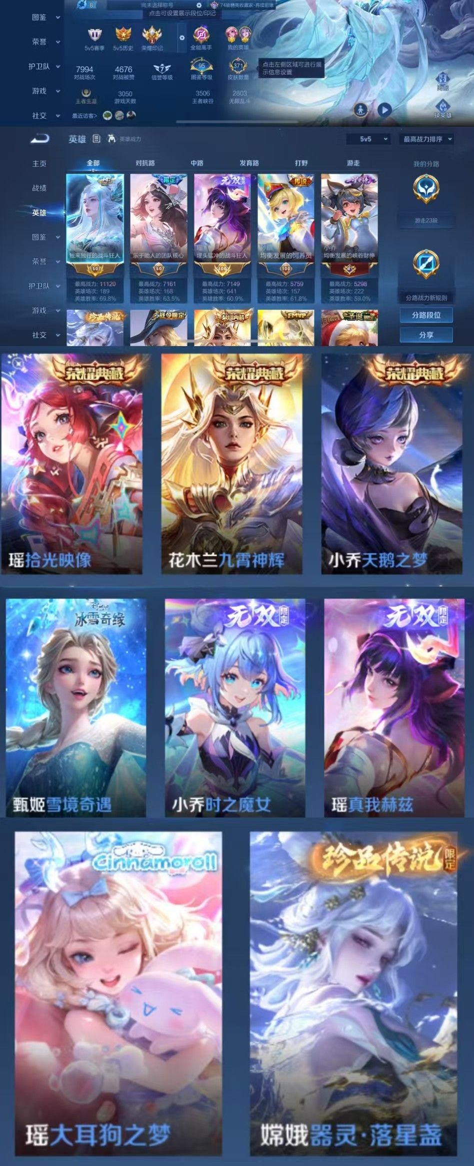 漂亮女号✨万战露娜金标瑶✨千山共赴大耳狗✨续相思落星盏✨众生和雪境奇遇✨拾光映像心动手记✨全龙年紫瑶