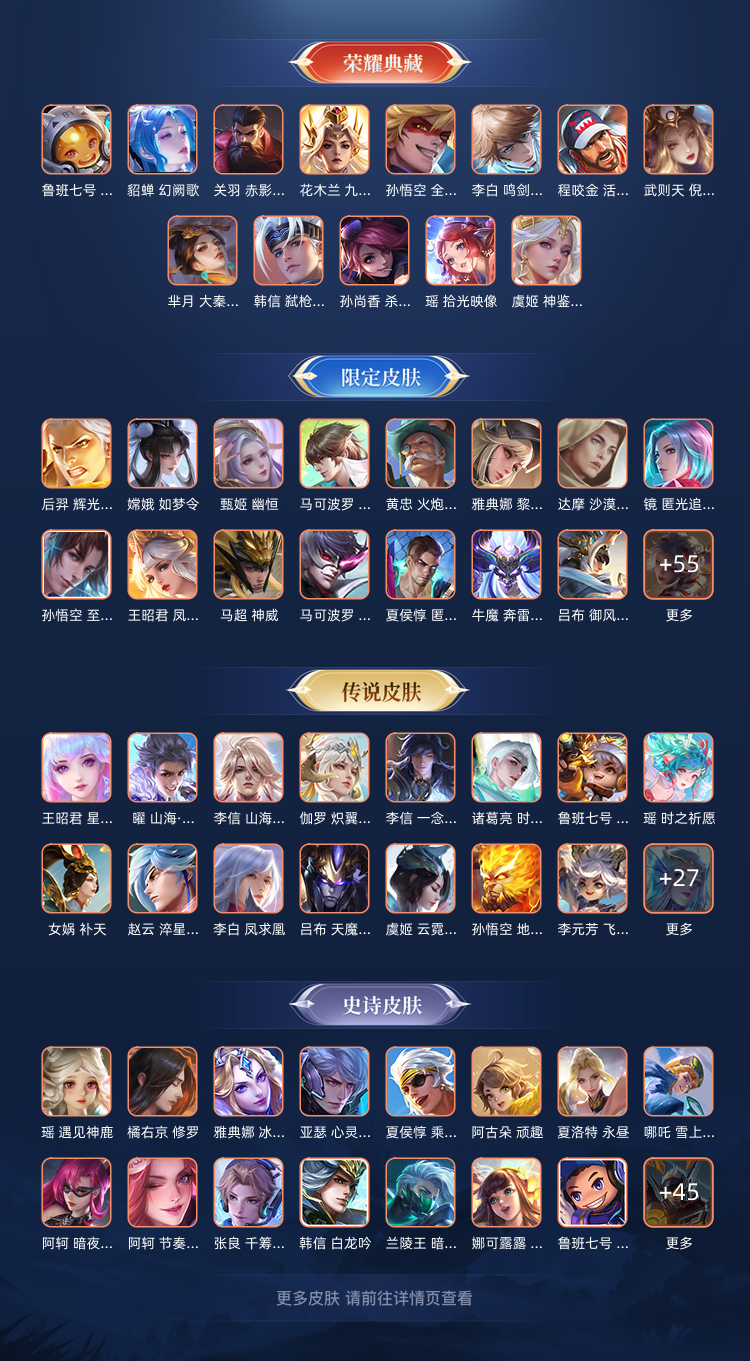 装备描述:贵族10❤️571皮肤❤️14典藏5无双1珍品传说87传说满蛇年公孙离fmvp