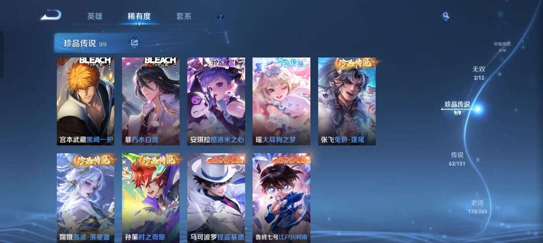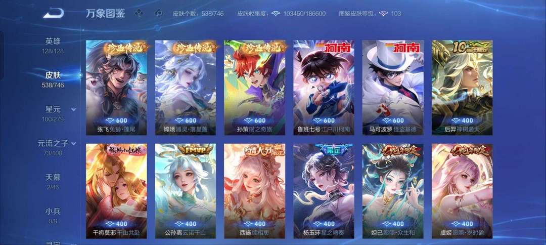 无双 v10 多戳戳❤️9 金标貂蝉馥梦繁花✨6 典藏满珍品✨甄姬无双器灵蛟龙剑✨怪盗基德女号