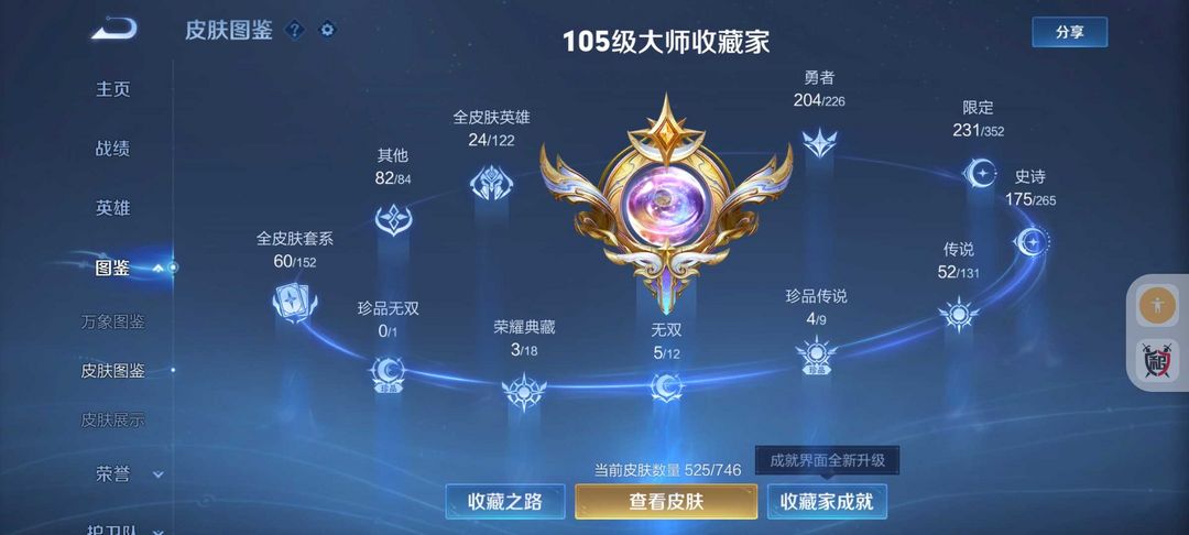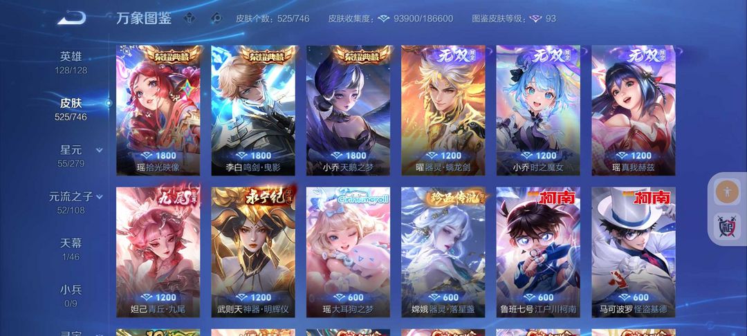 装备描述:525皮肤❤️5无双皮4珍品传说❤️4典藏❤️十周年限定❤️真我赫兹❤️怪盗基德柯南❤️蛇年限定皮❤️