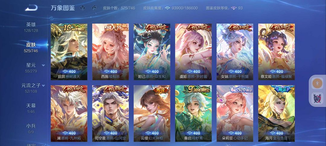 525皮肤❤️5无双皮4珍品传说❤️4典藏❤️十周年限定❤️真我赫兹❤️怪盗基德柯南❤️蛇年限定皮❤